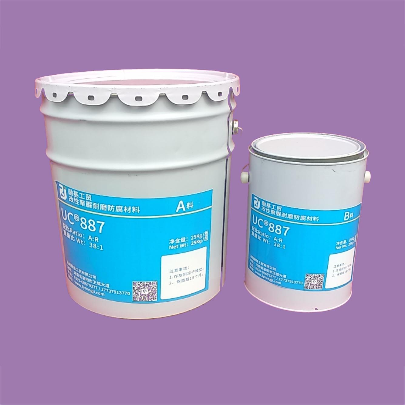 RJ-UC®887改性聚脲耐磨防腐材料可用于防腐,耐磨,防水,防護。用于金屬或者混凝土表面。RJ-UC®887能保護經(jīng)受重度磨損和高度沖擊力條件下的鋼、混凝土和聚酯表面。RJ-UC®887比鋼具有高得多的耐磨性,同時因為不粘附、摩擦系數(shù)小,可以大大加速其表面移動的諸如砂料等物體的運動,大大提高生產(chǎn)效率。RJ-UC®887的一些基本應用包括:糧食和化肥儲藏罐、斜槽傳送帶、運砂車的底盤、運土鏟車斗、工業(yè)地坪和螺旋升降器等。還廣泛的應用于采礦業(yè),如自卸車、傳送帶、過濾設備和粉煤灰泥罐。同時也廣泛應用于水力發(fā)電工業(yè),如電廠防腐:污水池,除鹽水箱,除硫設施,管線,冷卻水槽防腐,戶外大型音箱的保護。化工及生活污水池,淡水池,鹽水池,及管線內(nèi)外壁,水壩閘門、垃圾擋板、水箱、水泵、葉輪和罩等。還應用于要求減少機械設備噪音的紙漿和造紙業(yè),如儀表盤和輸送管。在農(nóng)業(yè)方面應用也非常廣泛,如螺旋升降機、需減弱噪音和減少磨損的螺釘、榨葡萄汁的底盤和收集箱等等