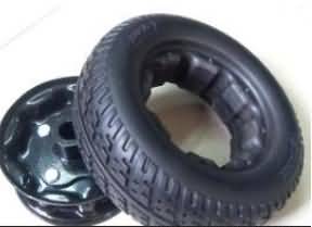 微孔聚氨酯彈性體輪胎是一種不必充氣的免充氣輪胎,是采用微閉孔發(fā)泡技術(shù)將高分子聚合材料形成互不相通而又致密的微小氣室,內(nèi)部充滿高彈性海綿體狀的輪胎。