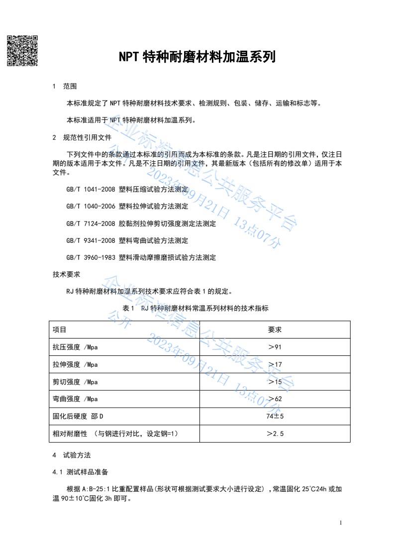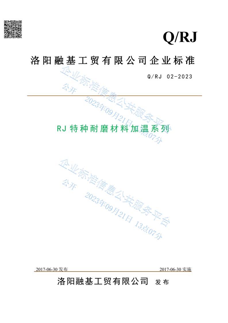 RJ加溫系列特種耐磨材料企業(yè)標(biāo)準(zhǔn)