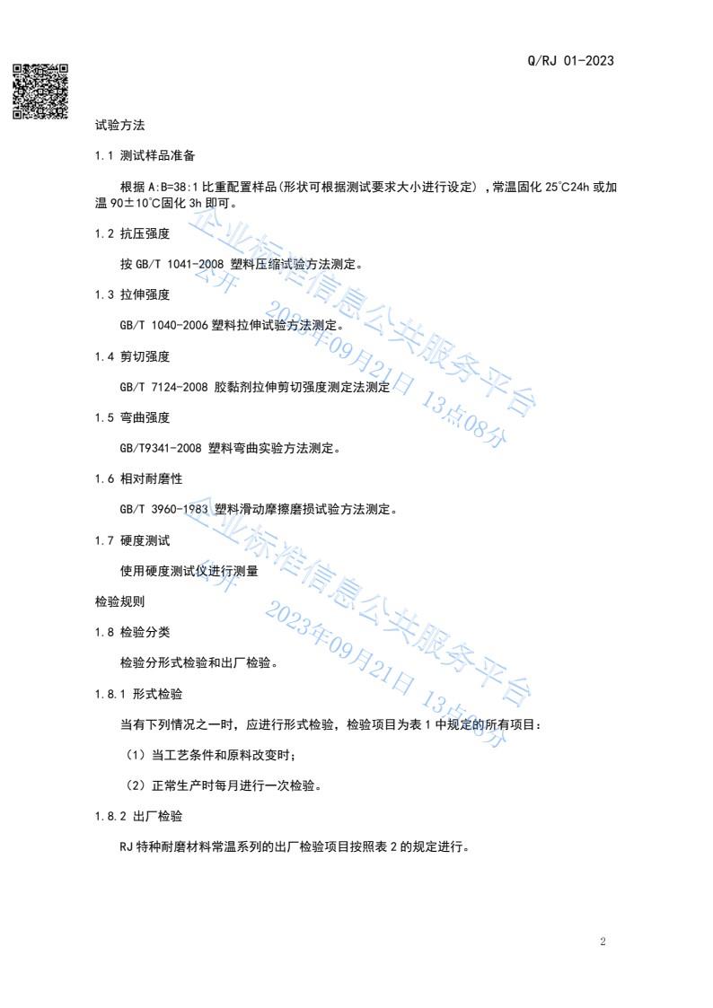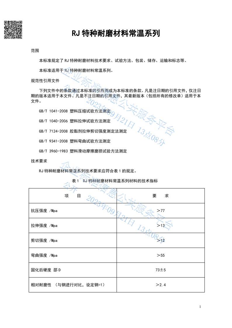 RJ常溫系列特種耐磨材料企業(yè)標準