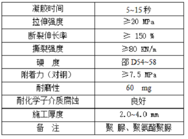 RJ-SPUA-401超重防腐材料是由半預聚體、端聚醚、胺擴鏈劑等原料現(xiàn)場噴涂成型的第三代聚脲彈性體。該技術將新材料、新設備和新工藝有機地結合在一起,是傳統(tǒng)施工技術的一次革命性飛躍,是目前國際上最先進的施工技術之一。
