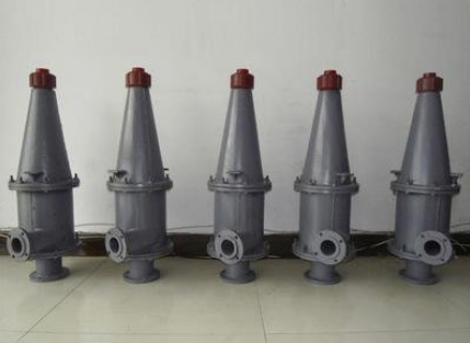 旋流器是一種將固液兩相混合物在離心力和重力的作用下進(jìn)行分離的設(shè)備?;旌弦阂砸欢ǖ膲毫η邢蜻M(jìn)入旋流器,在圓柱腔內(nèi)高速旋轉(zhuǎn)?;旌衔镏忻芏却蟮某煞盅剌S向向下運(yùn)動(dòng),并沿徑向向外運(yùn)動(dòng),到達(dá)錐體段后沿外壁向下運(yùn)動(dòng),并由底部口排出;密度小的成分向軸線方向運(yùn)動(dòng),并在軸線中心形成一向上運(yùn)動(dòng)的渦旋,然后由溢流口排出。旋流器廣泛應(yīng)用于選礦、洗煤、化工領(lǐng)域。
